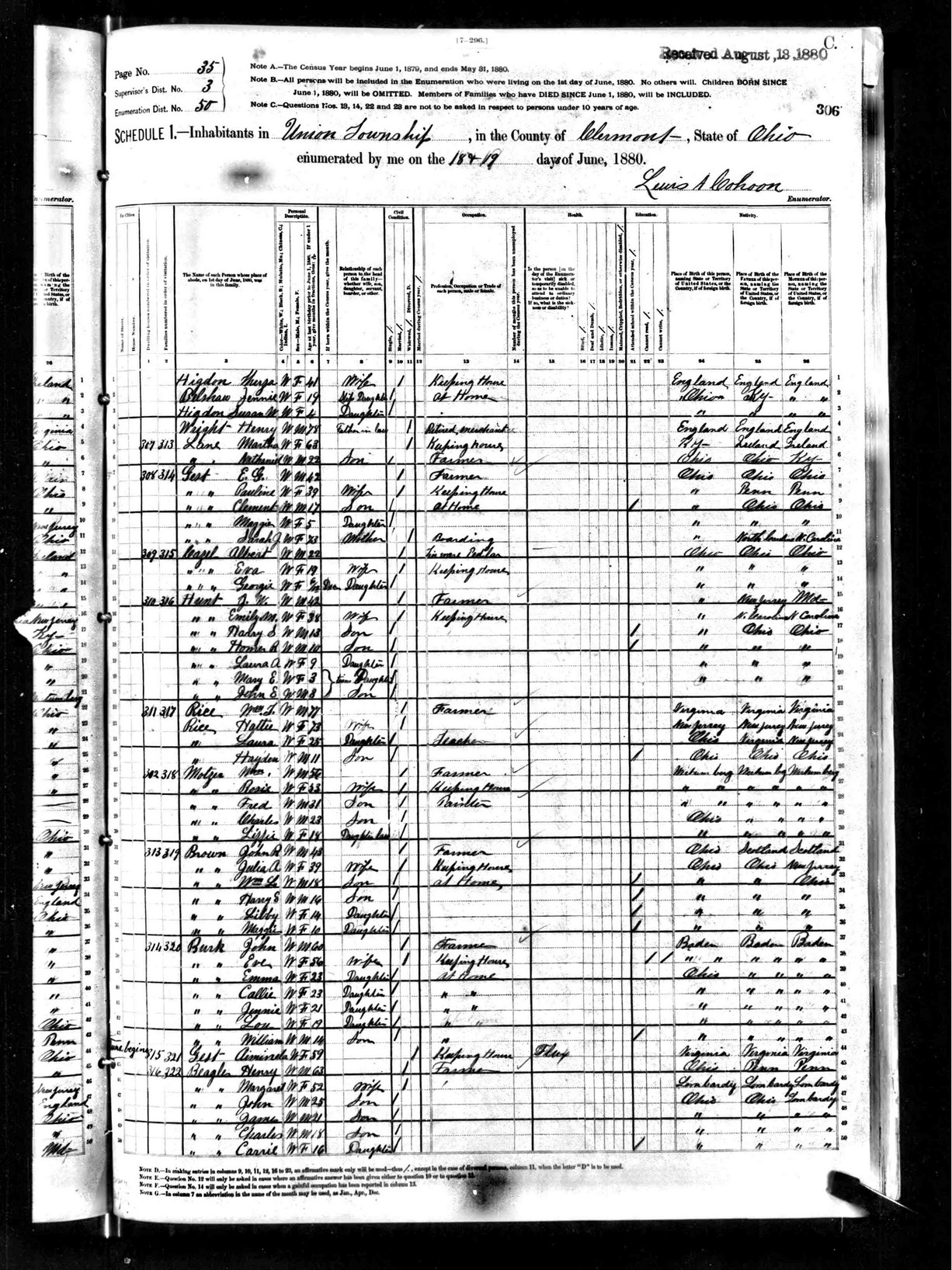 | 03 | 312 | HIGDON, Susan (Susie) Wright | W | F | 4 | Daughter | S | OH | KY | England | ||||||