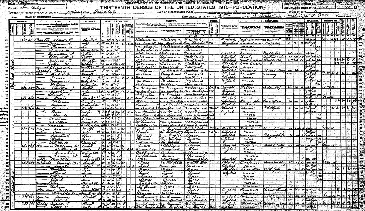 | Line | Family | Name | Relation | Sex | Color | Age | Status | Years | Total | Living | Self | Father | Mother | Occupation | XR | XW | B | D |