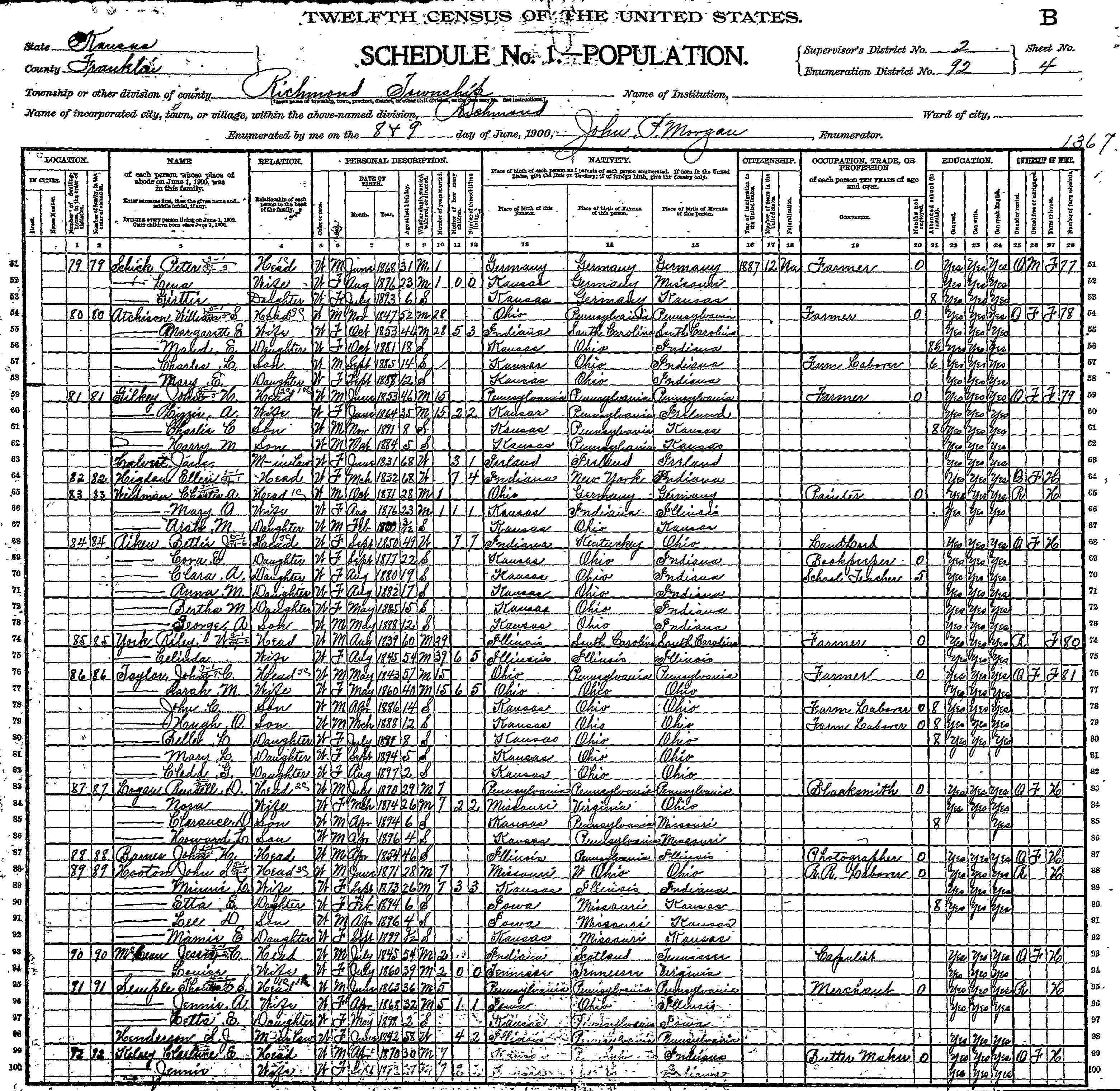 | Line | Family | Name | Relation | Color | Sex | Month | Year | Age | Status | Years | Total | Living | Self | Father | Mother | Occupation | XR | XW |