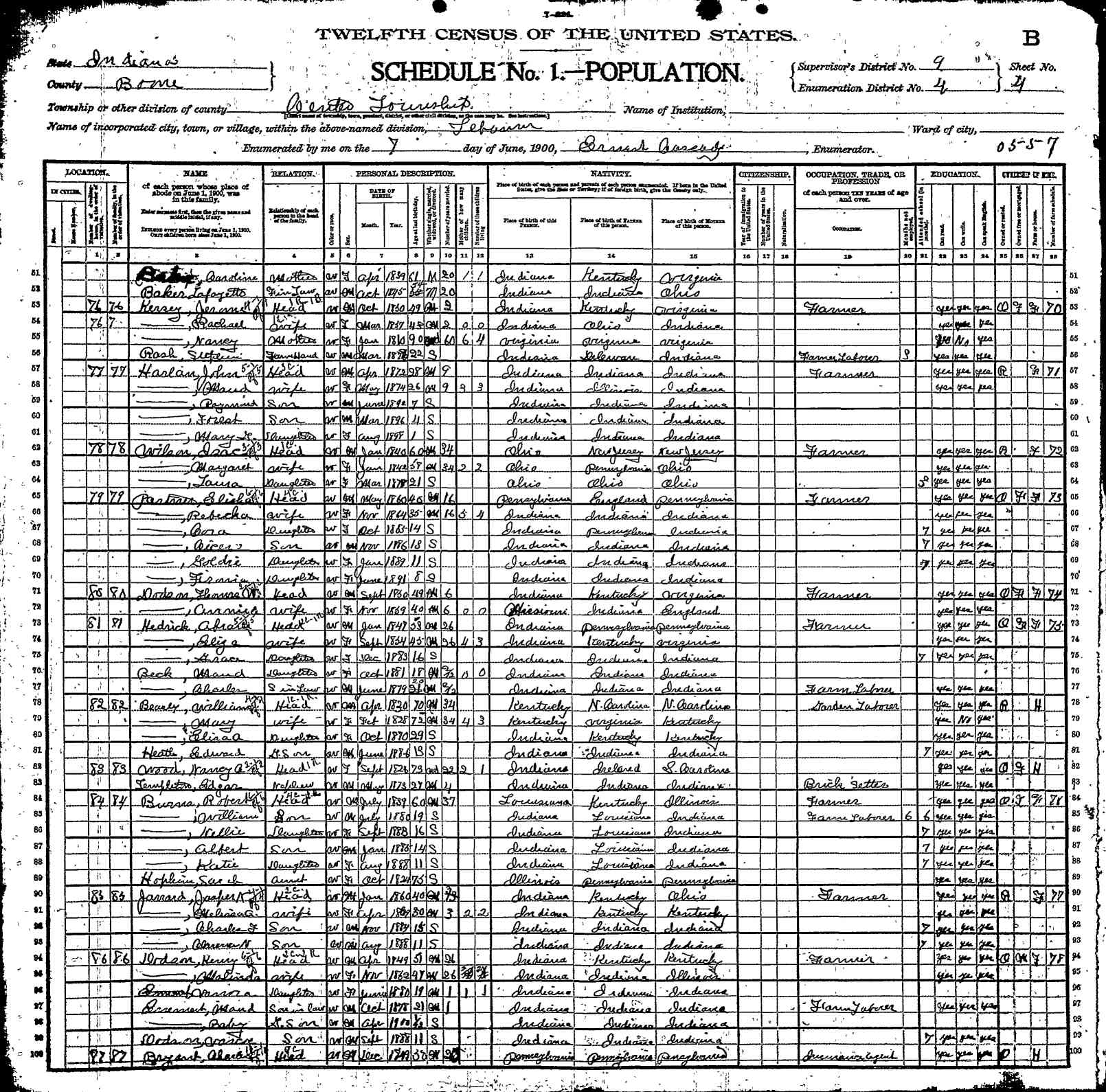 | 90 | 085 | JARRARD, Joseph (Jasper) Newton | Head | W | M | Jan | 1860 | 40 | M | 3 | IN | KY | OH | Farmer | ||||