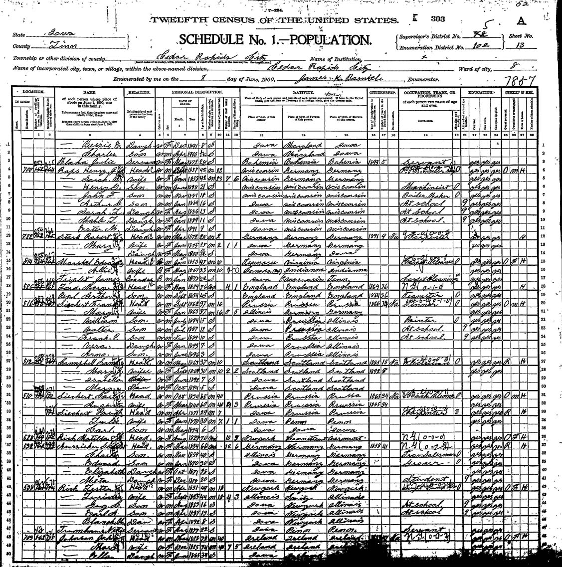 Date: June 8, 1900; Series: T623, Roll: 444, Page: 303