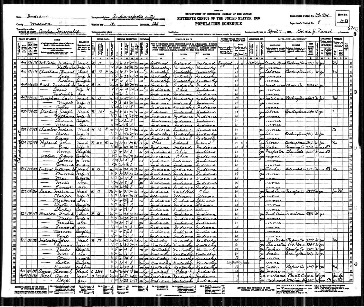 Date: April 7, 1930; Series: T626, Roll: 614, ED: 414, Page: 12B