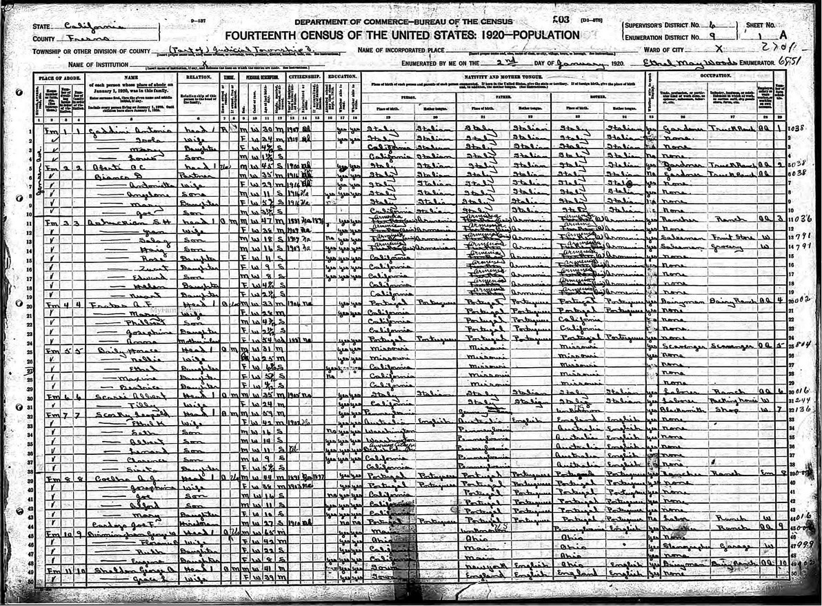 Date: January 2, 1920; Series: T625, Roll: 96, ED: 9, Page: 1A