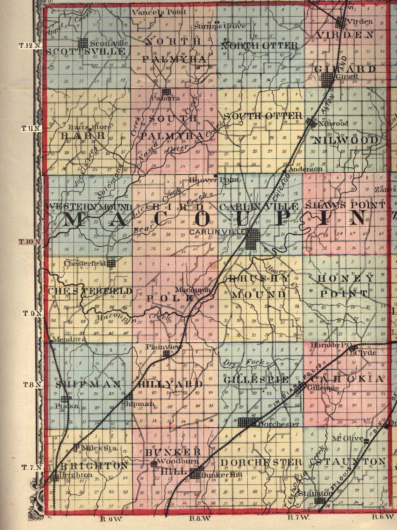 This county was named for the Indian word that designated a tuber, resembling the potato, that was found in abundance along the banks of what is now called Macoupin River or creek.